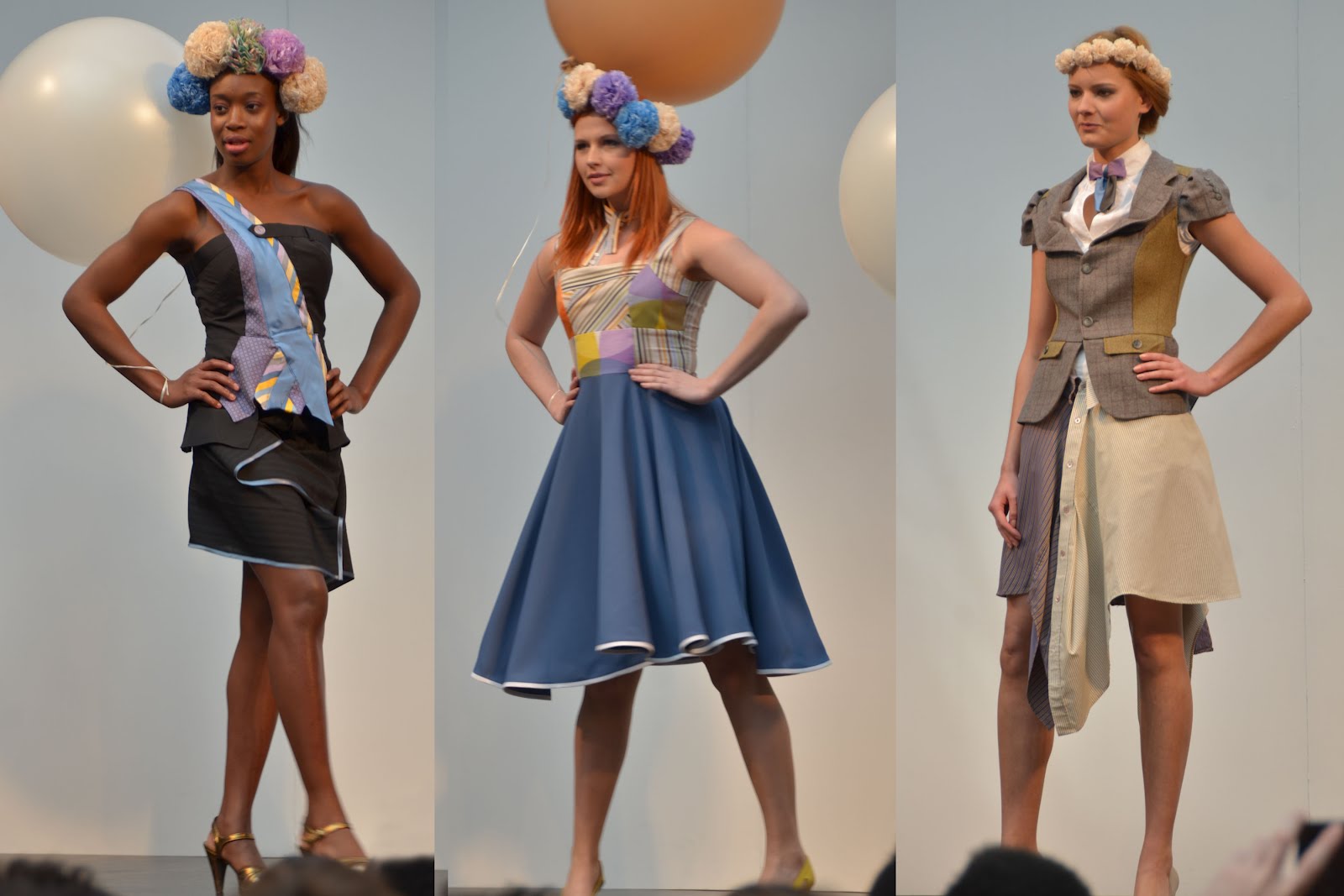 The so-called sustainable collection. The garments compiled of recycled mens suits, shirts and cravats. C'mon, just strip them off completely, first their love, then their money, now their clothes...